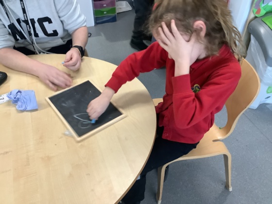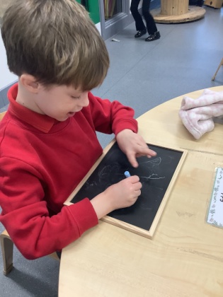 Daisy class have been working very hard on their early writing and mark making skills. From traditional pencils and pens to making marks in sensory materials like sand, shaving foam and glitter, the children are developing their fine motor strength and coordination they need. Whether its a finger trace in the foam or tracing letters from their name, every mark is a celebration of their hard work and progress!
